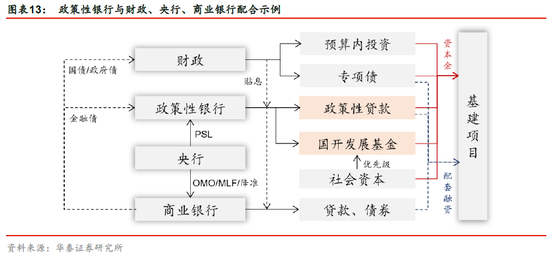 此外,政策性金融也能给予积极支持。与财政赤字和地方专项债相比,政策性金融扩表更为灵活,既可以配合财政提供配套贷款,放大预算资金或专项债杠杆,还可以通过软贷款、发展基金提供资本金,带动更多社会资本参与,有望积极作为。政治局会议多次提到发挥好政策性金融的作用,而央行可能加大PSL投放力度给予定向支持。