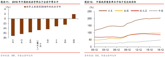整体来看,我国积极财政政策尤其是中央杠杆率仍有空间。首先,我国的财政赤字率处于全球中等水平,政府债务率低于发达经济体。财政赤字率方面,新兴市场经济体的财政赤字率普遍高于发达经济体,中国财政赤字率在全球经济体中处于中等水平,在新兴市场经济体中处于较低水平;政府债务率方面,虽然中国面临较为严峻的地方政府隐性债务问题,但是疫情冲击下的中央政府的财政政策责任明显大于地方政府,政府债务率水平反映的我国中央政府加杠杆仍有一定空间。