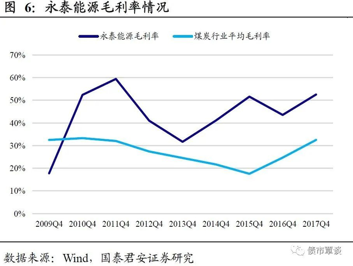 (1)行业景气低迷背景下的畸高毛利率。永泰能源是一家上市民企,主营业务方向为电力、煤炭和石化贸易。2014-2015年,煤炭行业产能过剩问题严重,煤炭价格呈下滑态势,行业景气度低迷,14、15年行业平均毛利率为21.66%和17.57%,分别同比下降11.76%和18.88%。而永泰能源却在整个煤炭行业景气低迷的背景下却拥有相当不错的毛利率,永泰在的煤炭业务14、15年毛利率分别为41.11%和51.64%,分别同比上升29.77%和25.61%。这在强周期行业低迷期是较为可疑的。