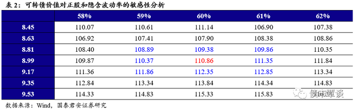 【条款分析】本次可转债发行期限6年,票息为递进式(0.5%,0.8%,1.2%,1.8%,2.5%,3.0%),到期回售价为115元(含最后一期利息)。主体评级为AA-,转债评级为AA-,按照6年AA-中债企业债YTM 6.24%计算,纯债价值为84.48元,YTM为3.42%。发行6个月后进入转股期,初始转股价10.95元,4月9日收盘价为8.99元,初始平价82.10元。条款方面,15/30+85%的下修条款,15/30+130%的有条件赎回条款,30/30+70%的回售条款。可转债潜在稀释比率约为10.07%。