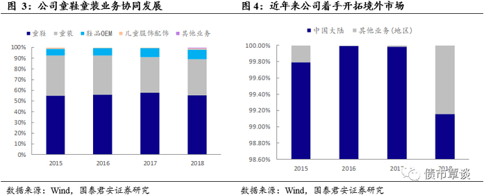 公司产品品类丰富,品牌形象深入人心。公司主要产品为童鞋、童装以及儿童服饰配饰,公司产品种类丰富,能够满足消费者对于颜色、款式、质量等多元化、个性化的需求。公司产品线齐全,包含全季节各类儿童服饰产品,每季童鞋和童装的款式数量达200-300款,配饰有50-100款。童鞋与童装营收占比稳定在90%左右。公司以国内销售为主,近年来开拓海外市场。公司在业界已树立起品牌形象,具备产品知名度和认可度。