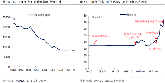 为了扩大财政、货币宽松托底经济的空间,并以货币贬值促进出口,解除金本位制度施加的桎梏,1971年尼克松单方面宣布放弃金本位,布雷顿森林体系崩溃。