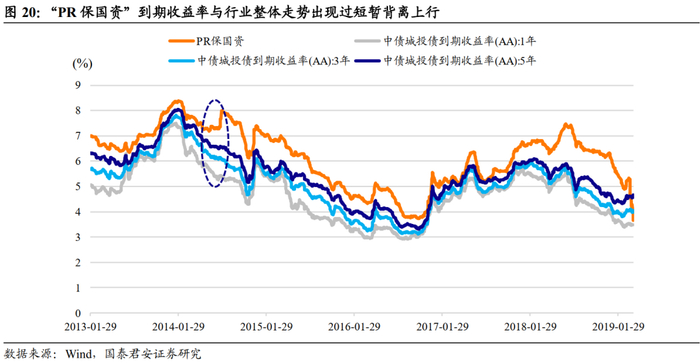 各评级公司对保山国资的主体级别未发生过调整,且债券收益率与行业走势出现过短暂的背离上行。“PR保国资”为保山国资2013年1月发行的企业债,2019年4月到期,从该只债券收益率走势看,大多数时间段与行业整体走势保持一致,但2014年6-7月行业收益率处于下行通道,“PR保国资”收益率却逆势上升,但2013年资产划入并未对债券估值产生扰动。