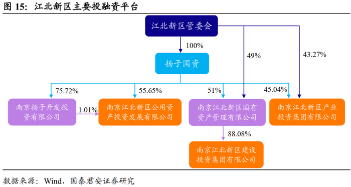为配合江北新区规划和建设,2014年由江北产投(原南京高新开发总公司)、江北建投(原南京化工园公司)、江北公用等企业组建而成扬子国资。扬子国资本部主要负责江北新区发展基金的管理运作,上述三家子公司负责实际项目投资建设。这三家企业此前分别负责南京高新区、南京化工园区及化工园城市功能区内的基建等工作。随着江北新区企业整合推进和重新定位,目前,江北产投主要负责区域内产业投资和保障房建设;江北建投负责区域内基础设施建设工作;江北公用负责区域内水务、供气等公用事业相关工作。