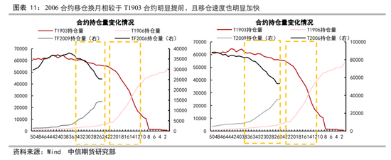 一是类似于T1903合约移仓“时间紧任务重”的问题在2006合约上并不显著。