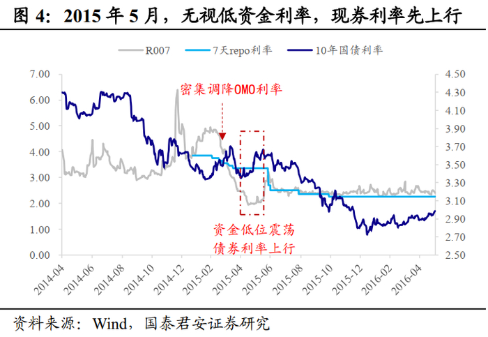 2015年也上演过类似“戏码”:3-4月份,连续密集调降OMO利率,累计幅度达50bp,资金利率也随之快速下行。然而,5月份资金利率跌破2%之后维持低位震荡,现券对此无视反而率先上行。无独有偶,导致利率调整的触发因素亦为地方债供给预期。
