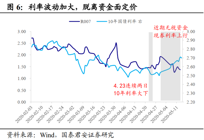 从周五早盘公布的实体经济数据来看,4月份投资与消费表现弱于预期,而失业率进一步上升至6%,则是更强的信号。这意味着“六稳”的压力加大,托底经济的政策不可或缺,在市场热议财政货币化的合法性和合适性之前,一个合理的判断是常规的货币政策还有加码空间。