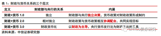 在中国经济遭遇前所未有的冲击过后,近期财政货币化成为学界、政界和市场上热议的话题。本文旨在厘清(1)财政货币化的界限,财政货币化、MMT和MP3,这三者是什么关系;(2)未来财政+货币的配合模式;(3)财政+货币的组合对大类资产的影响。根据财政政策与货币政策之间协调配合程度,我们将其划分为三个层次:
