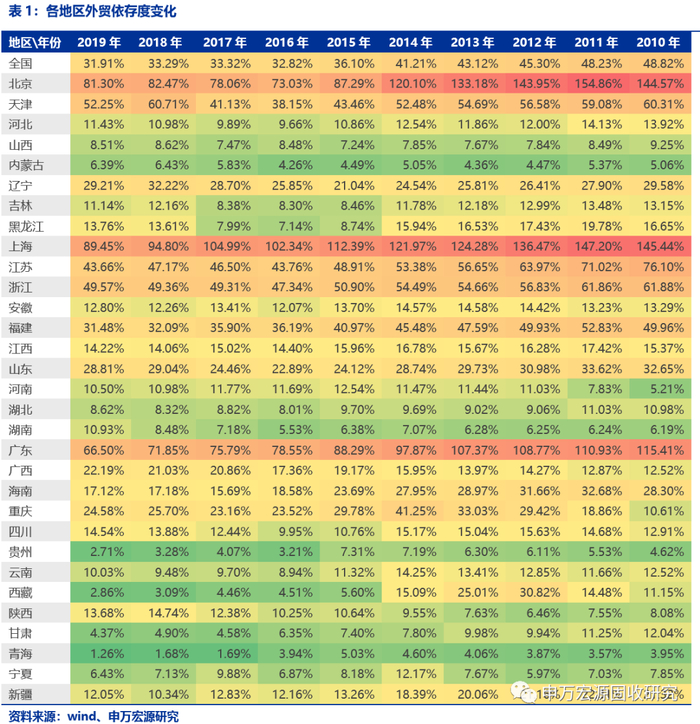 1. 外贸依存度高的地区有哪些?