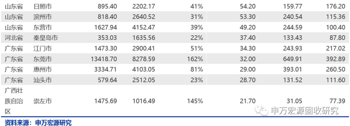 我们统计了外贸依存度和城投债余额都较高的城市,并且与地方的一般预算收入和政府性基金收入进行对比,需关注外贸依存度高、城投债余额大且地方财政收入相对较少的城市,如大庆市、鹰潭市、铜陵市等等。