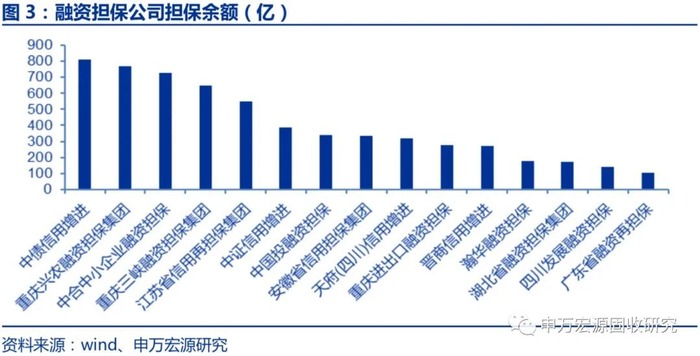 融资担保公司的债券担保业务头部效应较为明显,但是债券担保余额整体不高,占信用债的比重不大,随着监管制度的不断完善和地方对担保行业的逐步重视,预计债券担保余额会稳步上升。