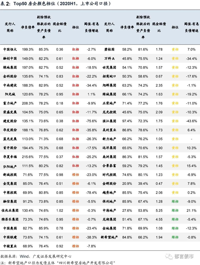 2020年8月20日,住房城乡建设部、人民银行召开重点房地产企业座谈会,研究进一步落实房地产长效机制,形成重点房企资金监测和融资管理规则,即“三道红线”政策。融资新规对房企有息负债规模设置了“三道红线”:(1)剔除预收款后的资产负债率大于70%、(2)净负债率大于100%、(3)现金短债比小于1倍。根据“三道红线”触线情况不同,试点房地产企业分为“红-橙-黄-绿”四档。如果“三线”均超出阈值为“红色档”,有息负债规模以2019年6月底为上限,不得增加。有两项、一项和没有超出阙值的公司,有息负债规模年增速分别设限为5%、10%和15%。参与座谈会的12家试点房企要求每月给央行报送3张表格,内容涵盖表内外负债与指标测算情况。试点将在2021年适时向全行业推广。
