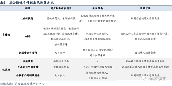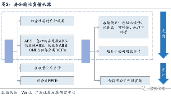 (1)在房企表内,但不计入有息负债的部分:常见的形式主要包括永续债类、子公司“明股实债”、供应链ABS以及应计入有息负债但未计入的尾款和租金类ABS、其他应付款类四大部分。(2)表外部分:主要包括母公司需承担连带责任的合联营公司有息负债及合联营企业对应“明股实债”两大类。