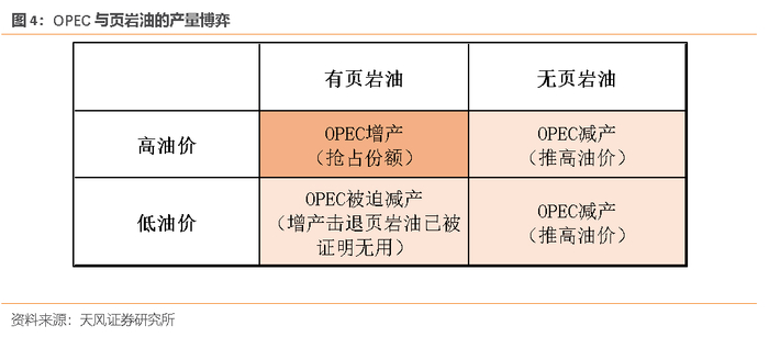 疫情前OPEC+的产量已经很大程度上取决于美国页岩油的生产情况。OPEC+的产量决策需要考虑以下两点因素:首先是外部供给的增量,假设页岩油生产情况正常,OPEC+减产带动油价上涨后,页岩油会开始增产,油价又将趋于回落;其次是内部分裂的可能,联盟内部并非铁板一块,俄罗斯等国家在油价上涨至70美元/桶后有较强的增产动力。因此,OPEC+只能与美国页岩油进行产量的动态博弈,页岩油减产,OPEC+也将随之减产维持高油价抢夺利润;页岩油增产,OPEC+也会随之增产抢占份额。