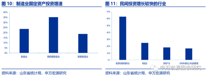 从民间投资来看,上半年民间投资占全部投资63.1%,同比增长15.9%,两年平均增长7.4%。山东省民间投资中11个行业实现正增长,其中,租赁和商务服务业、制造业、房地产业、水利环境和公共设施管理业分别同比增长62.9%、24.8%、18.3%、16.9%。