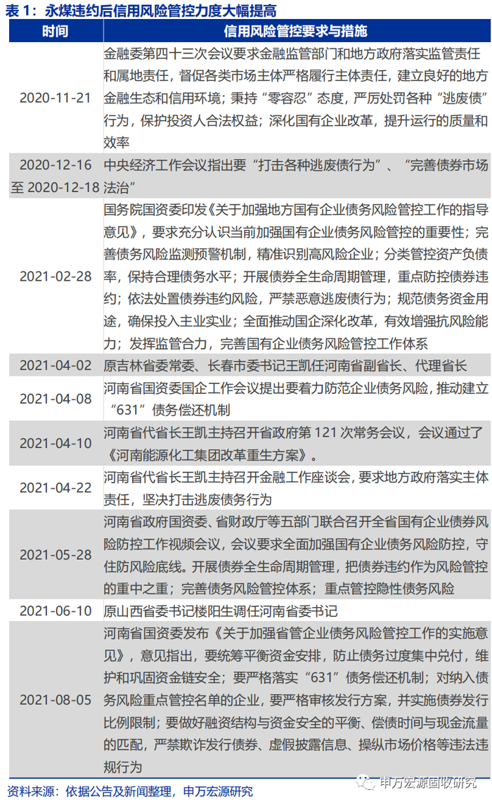 永煤违约后,河南省对区域信用风险的管控大幅加强、对地方国企偿债的支持意愿提高。