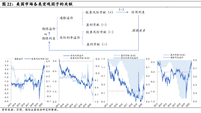 利用美国衍生品市场数据,可以从股票、债券收益率/价格中拆分出对经济基本面、政策环境的预期值,如短期实际利率预测、通胀风险溢价、实际利率风险溢价等。