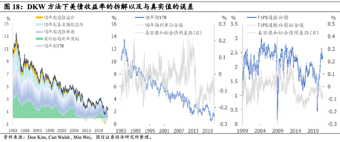 DKW方法成分汇总后为拟合值,而非真实值,以10年期美债到期收益率为例,存在20bp以内的模型误差。