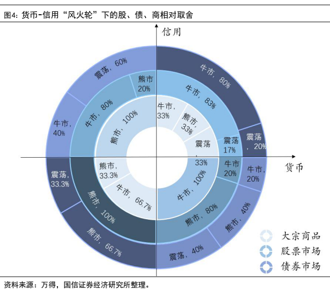 我们对七类配置框架在今年的适用程度、适用时长进行了评定,上半年采取“货币-信用”体系来追踪资产配置较为合适,结合历史胜率,按照货币与信用双宽的提示,我们认为上半年资产配置顺序:股票>商品>债券。