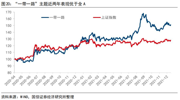 5.主题投资角度上,政策连续性较强的热点主题及当年会议重心值得关注。从政策连续性角度看,“一带一路”主题具备较强连续性。“共同富裕”作为近两年4月政治局会议强调重心之一,体现在股票指数连续性与爆发性并存上。除了近2、3年政治局会议上提及的政策连续性较强的主题,当年会议特定提及的重点内容同样值得关注。如2021年政治局会议前瞻性地强调了工业互联网,在市场形成了一定的预期共识,而今年主题更多落在了农业、能源、保供、物流等基础生产和生活属性更强的领域。