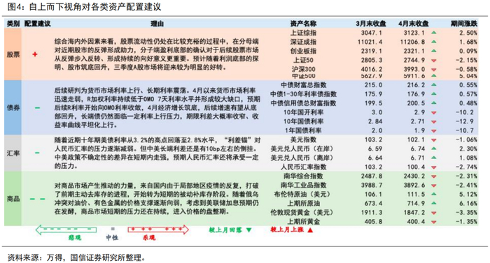 综上,我们对各类资产的推荐配置观点如下表所示,目前对资产配置的推荐顺序为:股票>债券>商品。