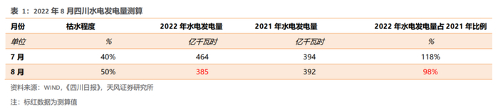 按照测算结果来看,在充分利用水能、不发生弃水的情况下,今年8月四川水电发电量预计与2021年同期基本持平。也就是说,今年四川8月的电力缺口将主要来自于用电需求,而非水电的供给。