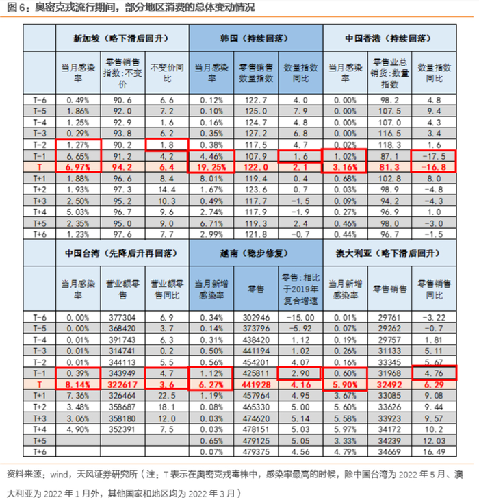 考虑到不同类型毒株对消费的影响不同,我们主要将目光聚焦于国内部分地区和海外国家在奥密克戎疫情时期的消费变化,样本包括日本、韩国、中国香港、中国台湾、越南、澳大利亚和新加坡。
