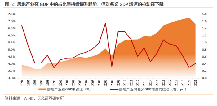 近年来,房地产业在名义GDP中的占比在7%左右。