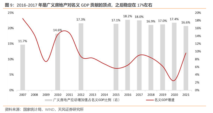 五、广义房地产业贡献了17%的名义GDP,2016-2017年是房地产经济的顶点