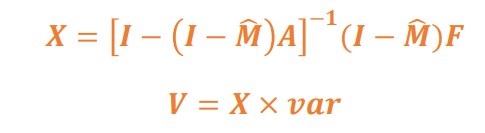 为列昂惕夫逆矩阵,也即完全需要系数矩阵,其中的元素代表考虑各产品的间接投入后,j产品每增加一单位最终使用时,对i产品的完全需要量。而引入