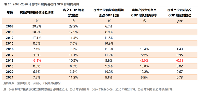 ③2018-2021年:2018年,房地产投资活动拉动的增加值在名义GDP中的占比下滑至新的平台,近年来稳定在10%左右。