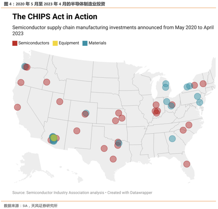 其中计算机、电子和电力设备制造业的在建厂房投资额接近321亿美元(今年5月年化值),占全美制造业厂房投资额的50%以上,比两年前的投资额上升了11倍。