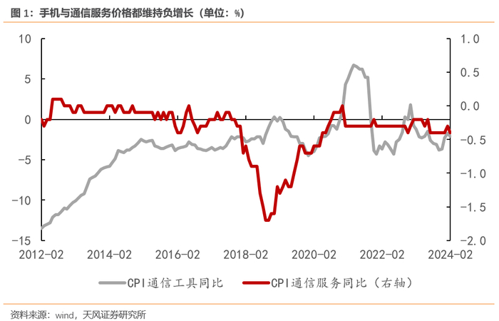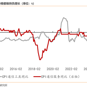 手机价格战结束后,受益于通信技术的不断迭代,手机价格依旧长期负增长。2011年以来,在89%的月份中,CPI通信工具同比增速为负,降幅中枢大致在-2%~-3%左右。