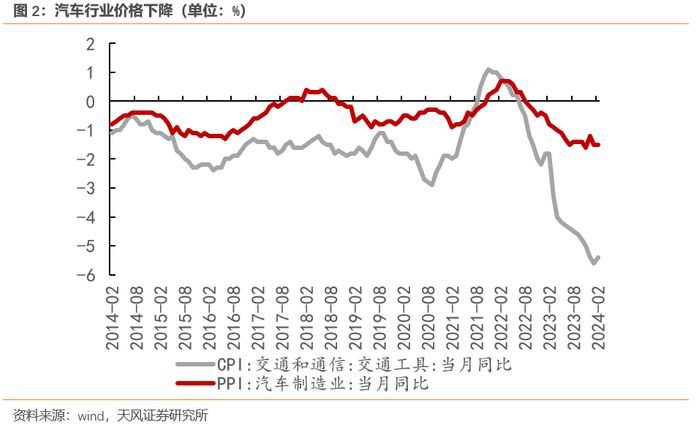 CPI交通工具同比增速从2023年初的-1.8%下探至2024年2月的-5.4%,乘联会数据也显示乘用车市场折扣率从2023年初的13.7%升至2024年初的20.3%。