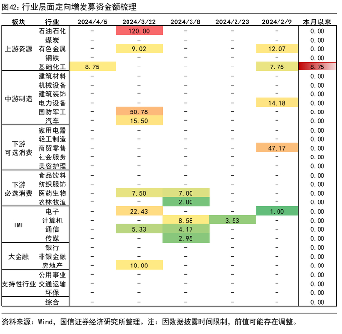 前两周定向增发家数为1家,定增募资总额为8.75亿元,覆盖了1个行业。较前值,定增募资家数减少10家,募资金额减少231.81亿元。