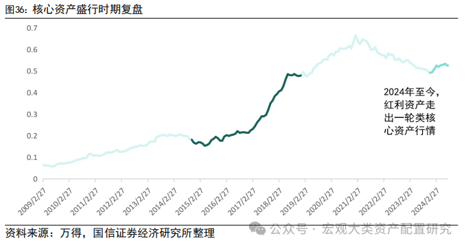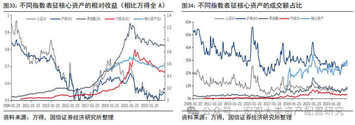 核心资产往往指那些具有长期竞争优势、业绩稳定、盈利能力强、行业地位突出、估值合理且被机构投资者广泛认可的资产。在不同的阶段,核心资产的侧重点有所不同,如2015年的茅指数、2018年的宁组合,以及2023年的红利股等等,出于自身行业地位、稳健的财务表现或深厚的技术壁垒,核心资产具有较强的抗风险能力,在一段时间内受到投资者追捧,成为资本市场上的资金“蓄水池”。