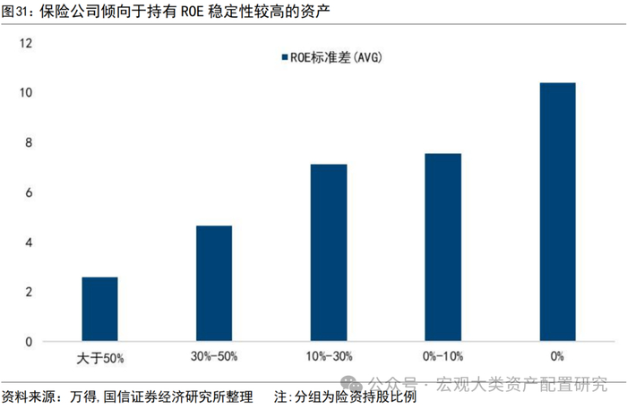 从机构化进程的角度看,险资、被动资金后续或成长期增量资金来源。在全球局势不确定性较强,风险偏好扰动较大的情况下,低风偏的投资策略整体更占优。2024年以来,险资对权益资产的配置比例有所回升,从近两年险资举牌的情况看,险资对ROE稳定的高股息企业整体举牌热度亦有提升,后续以险资为代表的耐心资本有望进一步提振交投情绪。从险资当前的审美偏好看,保险公司持股比例在30%以上的个股,近10年ROE波动性明显更低。