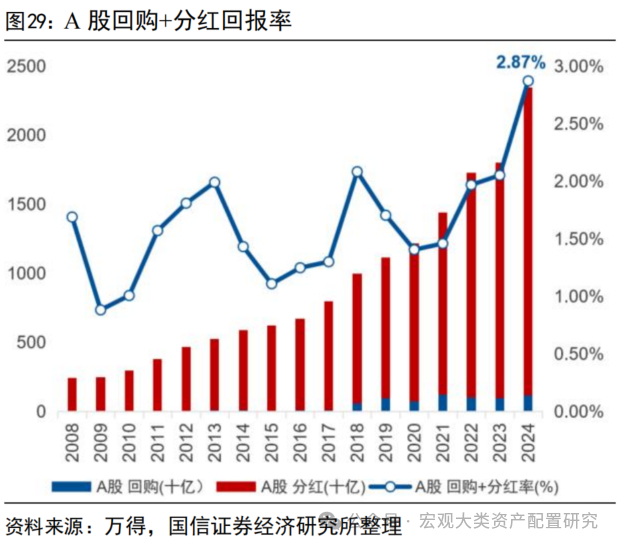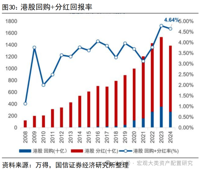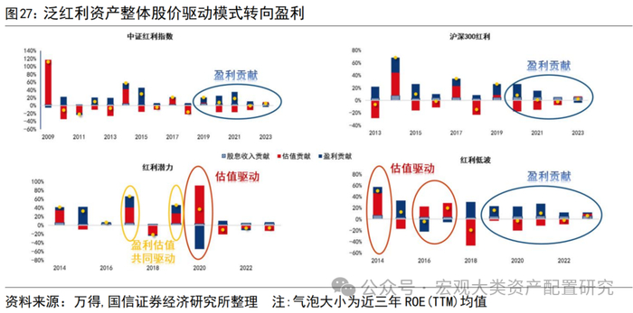 截至8月中,中国资产回购+分红回报率达到2.87%,为历史最高位;港股回购+分红回报率则接近5%,国九条引导企业不断提升分红,ROE有望获得进一步增厚。在2023年末的《高股息策略再审视》一文中我们提到,股息率较高的公司,往往步入了相对成熟的产业周期阶段,营收、净利润增速较股息率较低的公司更慢,成长性不佳,在盈利水平长期稳定在个位数的情况下对收利增速不会过度敏感,分红是更顺理成章的选择。对于盈利增速长期步入个位数区间的A股而言,泛红利资产通过分红实现“ROE低波”,在机构配置拥挤度不高的情况下仍有进一步被抱团的潜力。