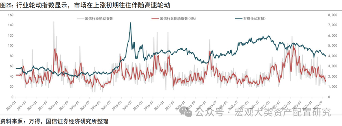 我们对各行业过去一年左右时间内的涨跌幅进行排序,根据各个行业涨跌幅排名变化构造行业轮动指数。如果每个行业涨跌幅排名当期没有发生变化,那行业轮动指数将降至0,该指数越高代表行业轮动的速度越快,越难以通过市场主线的思维捕捉。8月A股行业轮动指数持续下行。