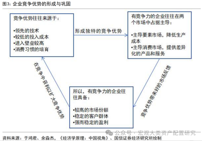 对企业竞争力的评估需要考虑其竞争优势的潜在来源,并确定是否能够转化为独特的竞争优势。在竞争中占据优势地位的企业往往会进一步增大投入,以维护自身的竞争优势来源。在现实中,直接分析企业的竞争优势是困难的,一方面企业会对核心技术和关键数据保密,避免竞争对手过多地获知这些信息,另一方面不同企业的竞争优势有不同的表现,这可能是不同的财务指标、专利或者产品参数。因此,在对企业竞争优势进行分析时,从其竞争结果入手更好,比如企业的市场份额和盈利表现、以及整个市场中头部企业的集中度等等。