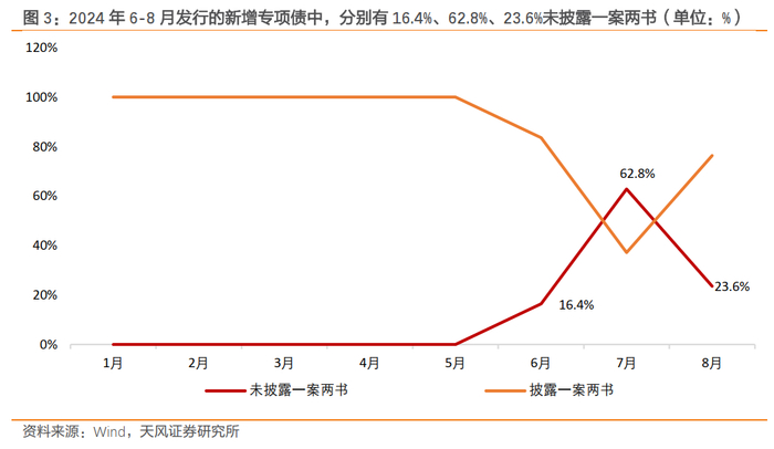 财政缺口的扩大,使得地方政府债券的发行使用也出现了一些新的变化。今年6-8月,分别有16.4%、62.8%、23.6%的新发行专项债在发行时没有披露“一案两书”(《专项债券项目实施方案》、《项目财务评价报告书》、《项目法律意见书》)。这意味着对专项债资金的使用限制有可能适度放松,有助于财政资金更好地横向流动,这可能也是对财政压力加大的主动应对。