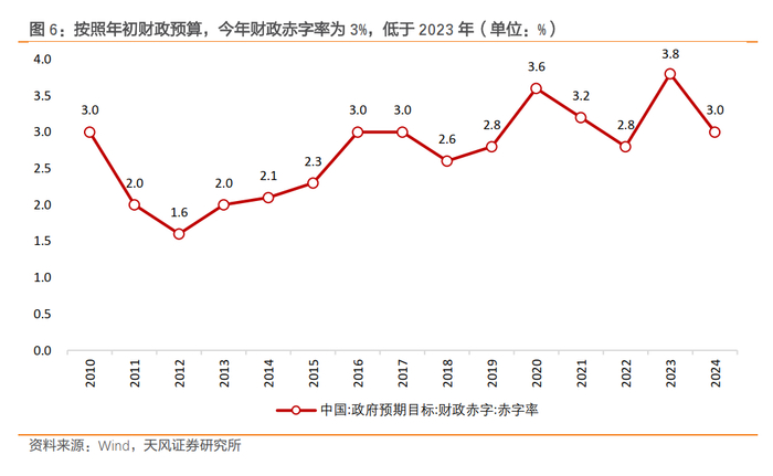 稳汇率压力的减弱,为积极的财政政策打开空间。去年10月底,全国人大常委会批准增发国债[1],我们认为今年仍有可能用临时提高赤字率、增发国债的方式来弥补财政收入的缺口。