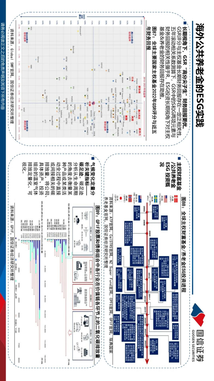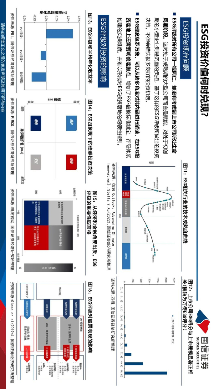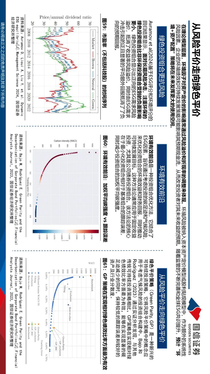 ESG与资产配置:从权益到多资产、从战术到战略,ESG与高股息、绿色平价、ESG曲面多维度实践,海内外ESG主题产品多样性有望提升。1)权益策略上,高股息与ESG的公司治理维度理念高度契合,ESG评级更高的公司大多治理体系更完善,处于产业成熟期,分红能力与分红稳定性提升。海外成熟投资市“追成长”到“寻龙头”的过程中,投资策略对盈利与分红稳定性、现金流质量权重日渐提升,ESG嵌入高股息策略是底仓配置的抓手。2)战术资产配置层面,ESG评分的上调或下调可以系统地衡量各资产面临的中短期 ESG 风险或机遇,关注定量视角下的风险识别。3)战略资产配置方面,寻找组合的ESG有效曲面,在固定ESG目标的二维平面上找到最佳收益风险回报组合。