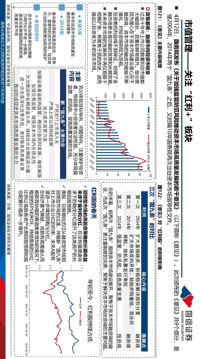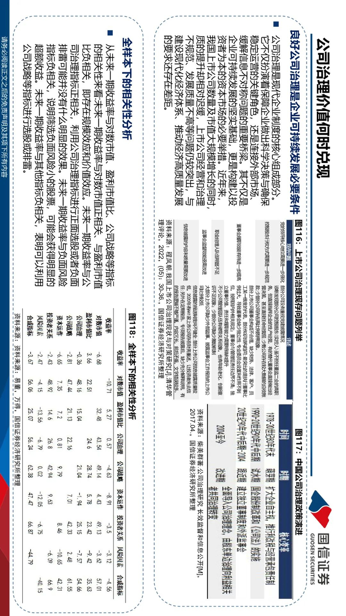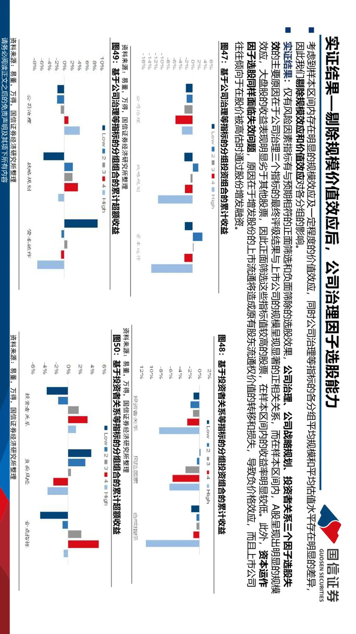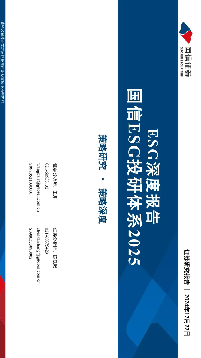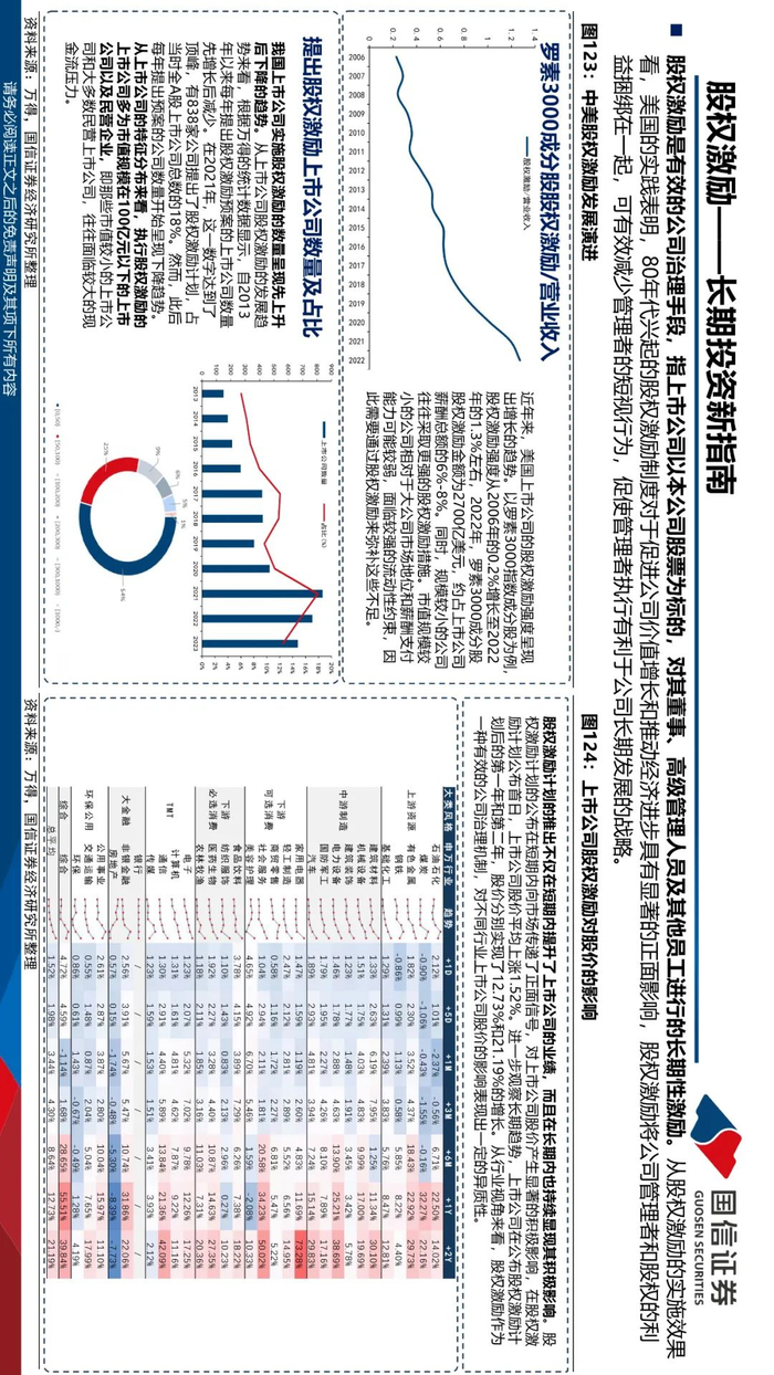 ESG展望:从海外贸易情景和国内市值管理两大维度出发。海外贸易视角下,在ESG的三个维度,特朗普有不同的政治举措,对ESG议题的反对主要集中在环境层面。共和党方面整体对ESG态度中性偏负,反对过度监管,认为这将限制自由市场和企业发展。复杂的ESG监管要求和严格的国际规范是企业“走出去”过程中不可避免的,能否适应并满足海外国家的ESG监管要求,已经成为中资企业在海外市场取得成功的关键因素。国内市值管理视角下,良好公司治理是企业可持续发展必要条件,新《国九条》后锚定市值管理核心工具箱,从分红、回购、并购重组出发。分红方面,分红稳定性与ROE稳定性整体呈正相关,动态股息率与ESG治理端因子共同结合构建底仓策略;回购方面,股权激励将公司管理者和股权的利益捆绑,关注股权激励为目的的大额回购;并购重组方面,关注公司经营目标多次重申和具备产业逻辑相关企业。