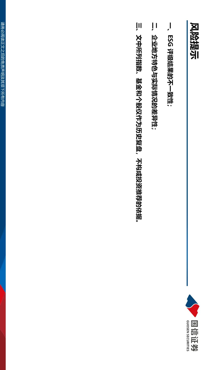 风险提示:ESG 评级结果的不一致性;企业地方特色与实际情况的差异性;文中所列指数、基金和个股仅作为历史复盘,不构成投资推荐的依据。