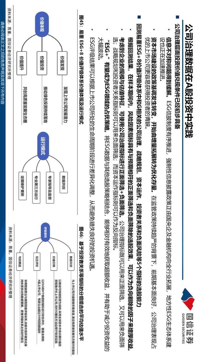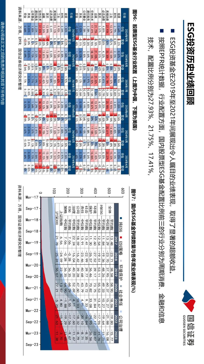 ESG实战应用:关注长期正确的“ESG+”超额收益获取路径。1)聚焦低碳转型、气候风险管理是ESG投资的长期破局之道,实践中高耗能产业产出走高过程中股价逆势走弱,排污环比因子与投资收益呈“U”型关系,关注排污控制适中、转型在途的相关企业;2)考虑到企业的规模与估值特征,可使用公司治理指标进行正面筛选和负面筛选;3)ESG因子适合嵌入到其他截面选股策略中形成“ESG+”策略,能够相对有效地获取超额收益,并有助于减少投资收益的大幅波动;4)日历效应视角下,2024年市场承压或偏震荡的区间内ESG策略优势凸显。