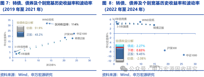 第二,低评级转债仓位提升的择时点位较精确,指数成份券评级在A+及以下的权重在去年7月开始明显上升,后续充分受益于权益回暖带来的小市值风格回归叠加低价转债修复。这侧面表明双低指数具备一定的择时功能,可较为及时捕捉时点上较有性价比的转债。因此,虽然WIND双低指数下修贡献有限,但估值贡献明显。