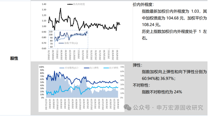 第三,2024全年观察视角下,指数成分券转债价格的中位数与全市场近似,但转股溢价率明显小于全市场的中位数,表明指数显著侧重于转股溢价率较低的转债,即估值较低的平衡偏股转债。