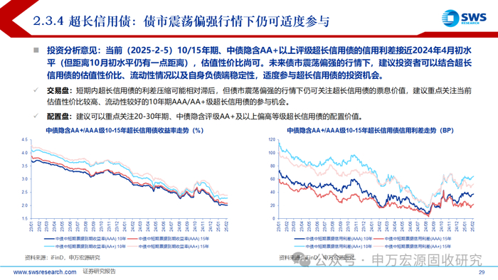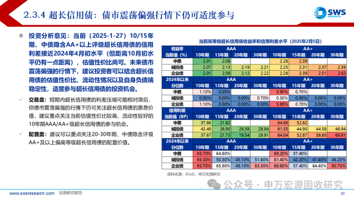 超长信用债:估值性价比尚可(尤其是10年期),建议投资者可以结合估值性价比、流动性情况以及自身负债端稳定性,适度参与超长信用债的投资机会。