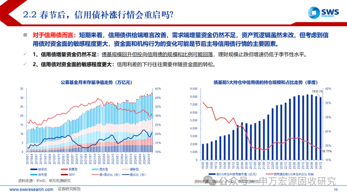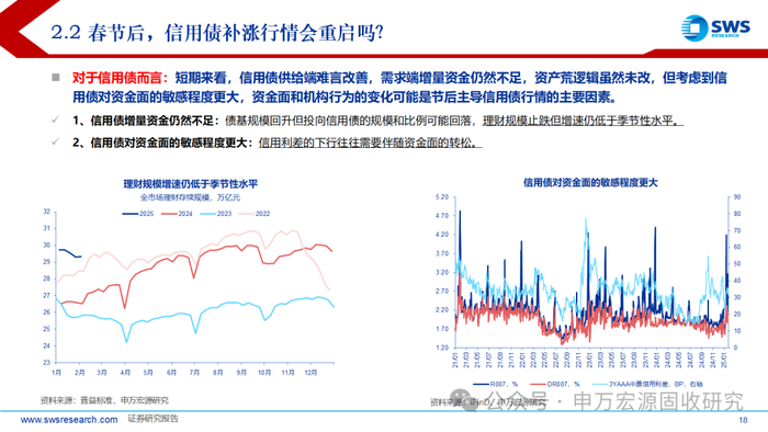 对于信用债而言:短期来看,信用债供给端难言改善,需求端增量资金仍然不足,资产荒逻辑虽然未改,但考虑到信用债对资金面的敏感程度更大,资金面和机构行为的变化可能是节后主导信用债行情的主要因素。